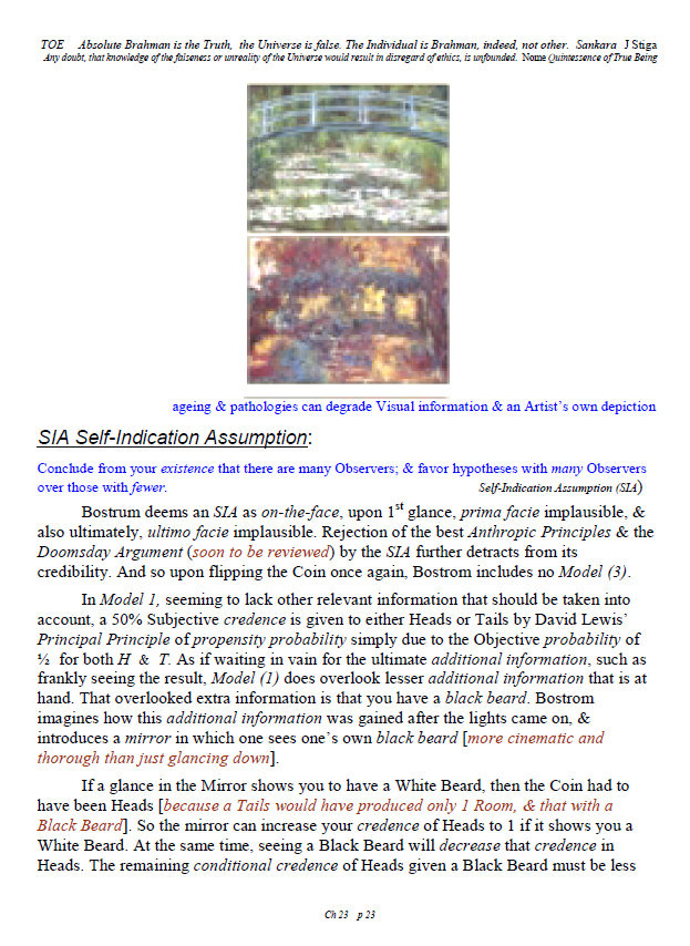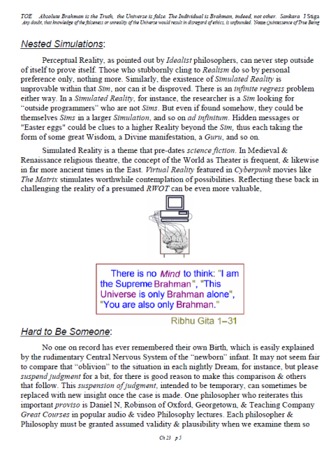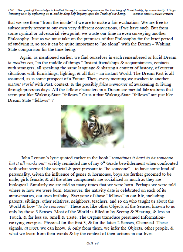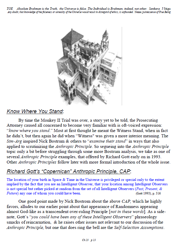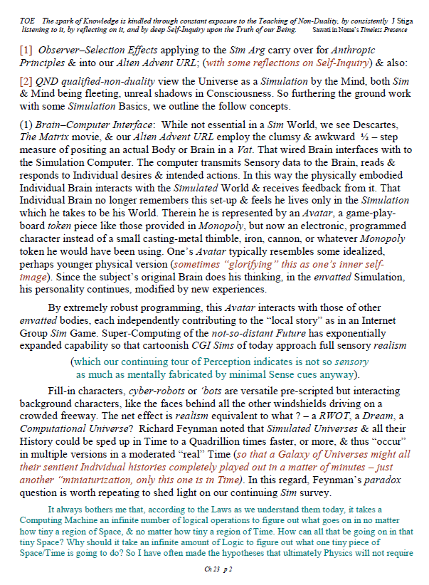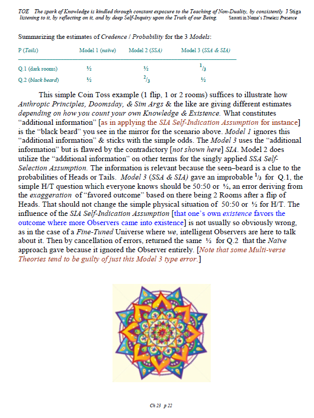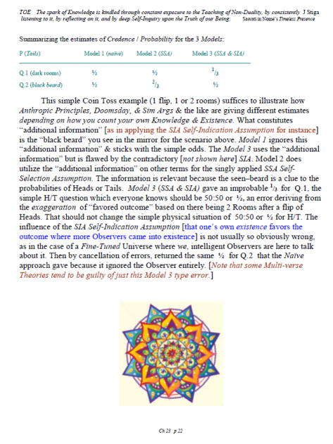 [A brief note of explanation – this Blog is entitled “Non-Duality & Science”, & so the more Science oriented pages (from what I like to think of as a “comic book”) have been posted there, while other chapters have been posted in the other Blog noted below. Science is a mental discipline that attracts some worthy admirers & participators. Some of these, too few, are good prospects for the ancient teaching introduced here in many ways. Otherwise certain Science topics like the Anthropic Principle, reinforce the general Theism which is a good idea in this materialistic age. A few other topics in Science, such as the Copenhagen II – Max Born – Von Neumann – Wigner model of Quantum Mechanics, are worthy entries to the extent that they introduce Consciousness into the physical Sciences. All that aside, the real topic here is the pinnacle as Advaita Vedanta, Non-Duality – that pinnacle being Ajata Vada, No–Creation. The great Teachers of the same include Sri Shankara & Sri Ramana Maharshi. Both would support Theism in general & adaptations of Vedanta, such as Vishishtadvaita Vedanta – Qualified Non-Duality, for those not making headway in Ajata Vada, their present course of growth might be better served with a temporary involvement in Qualified Non-Duality. The scientist who perhaps best expresses the influence of Qualified Non-Duality in Science, for instance, would be the quintessential “New–Age” Quantum Physicist, Amit Goswami. And so to that source, & the Quantum Activism he currently advocates [with a 1–course degree program], along with more than a half-dozen good books & former participation in the controversial What the Bleep movie, to him I extend enthusiastic endorsement, for that Qualified Non-Duality described in the context of Science. I do not stand so much “with him”, as much as nearby saluting his good work. Again, as here, a goal is inserting Consciousness into Science & “saving the World.”]