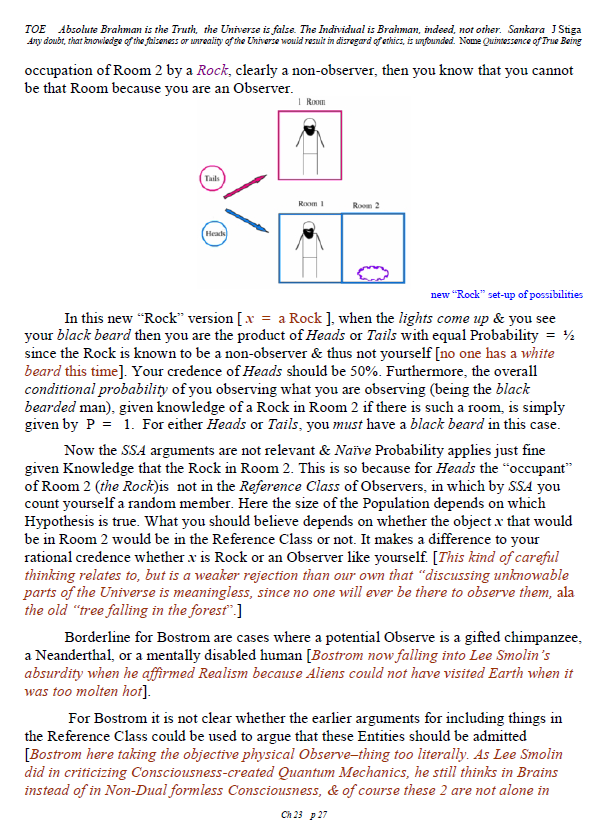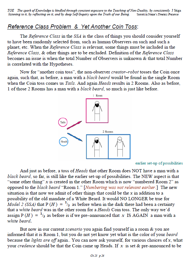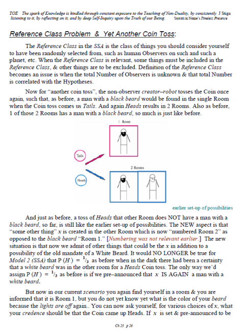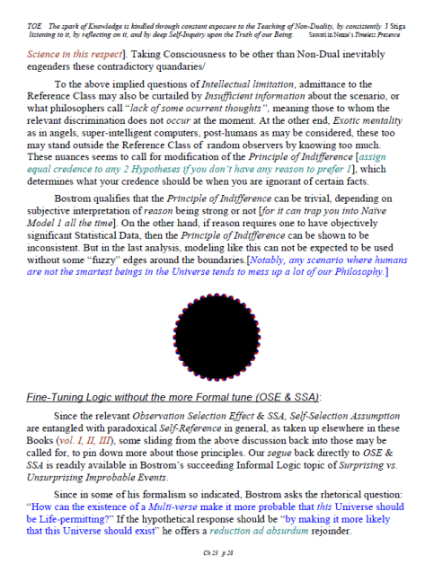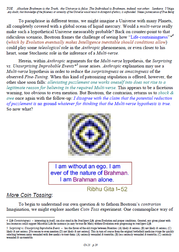 [A brief note of explanation – this Blog is entitled “Non-Duality & Science”, & so the more Science oriented pages (from what I like to think of as a “comic book”) have been posted there, while other chapters have been posted in the other Blog noted below. Science is a mental discipline that attracts some worthy admirers & participators. Some of these, too few, are good prospects for the ancient teaching introduced here in many ways. Otherwise certain Science topics like the Anthropic Principle, reinforce the general Theism which is a good idea in this materialistic age. A few other topics in Science, such as the Copenhagen II – Max Born – Von Neumann – Wigner model of Quantum Mechanics, are worthy entries to the extent that they introduce Consciousness into the physical Sciences. All that aside, the real topic here is the pinnacle as Advaita Vedanta, Non-Duality – that pinnacle being Ajata Vada, No–Creation. The great Teachers of the same include Sri Shankara & Sri Ramana Maharshi. Both would support Theism in general & adaptations of Vedanta, such as Vishishtadvaita Vedanta – Qualified Non-Duality, for those not making headway in Ajata Vada, their present course of growth might be better served with a temporary involvement in Qualified Non-Duality. The scientist who perhaps best expresses the influence of Qualified Non-Duality in Science, for instance, would be the quintessential “New–Age” Quantum Physicist, Amit Goswami. And so to that source, & the Quantum Activism he currently advocates [with a 1–course degree program], along with more than a half-dozen good books & former participation in the controversial What the Bleep movie, to him I extend enthusiastic endorsement, for that Qualified Non-Duality described in the context of Science. I do not stand so much “with him”, as much as nearby saluting his good work. Again, as here, a goal is inserting Consciousness into Science & “saving the World.”]